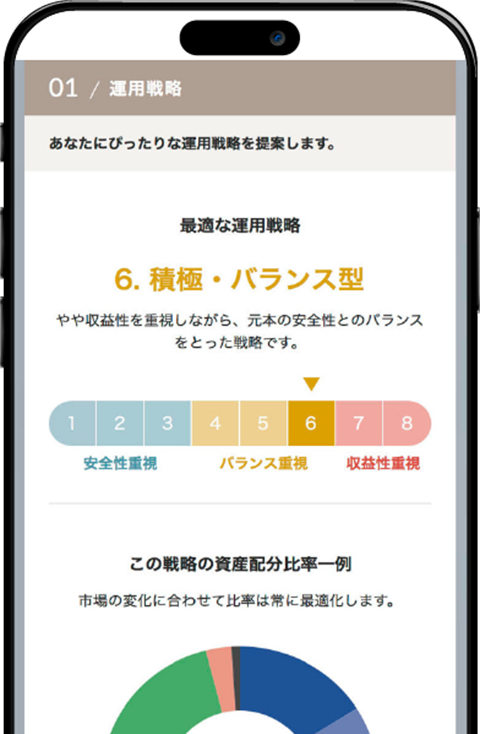簡単な質問に答えるだけで、お客様に合った運用戦略と投資配分を提案します。
